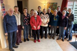 Zingen verbindt, zingen maakt blij. Op dinsdagochtend komen eens in de veertien dagen mensen samen die direct of indirect geraakt zijn door kanker. Door te zingen kan een kracht ontstaan, die bij de verwerking helpt en het terugvinden van een nieuwe balans. De saamhorigheid is groot, sommige liederen ontroeren ons, bij andere schieten we in de lach en komen we in beweging. Je ervaart het delen van plezier door te zingen, óf je nu voor het eerst zingt en denkt dit niet te kunnen óf je bent een ervaren zanger, gezamenlijk ontstaat er een krachtige klank, vol energie. Hier mag je zo zijn als je op dit moment bent en dat herkent een ieder en het geeft verbondenheid. We zingen vooral wereldmuziek en verheugen ons over iedere nieuwe stem die erbij durft te komen. Wat een verrassing als je dacht niet te kunnen zingen en opeens met een glimlach staat te galmen.