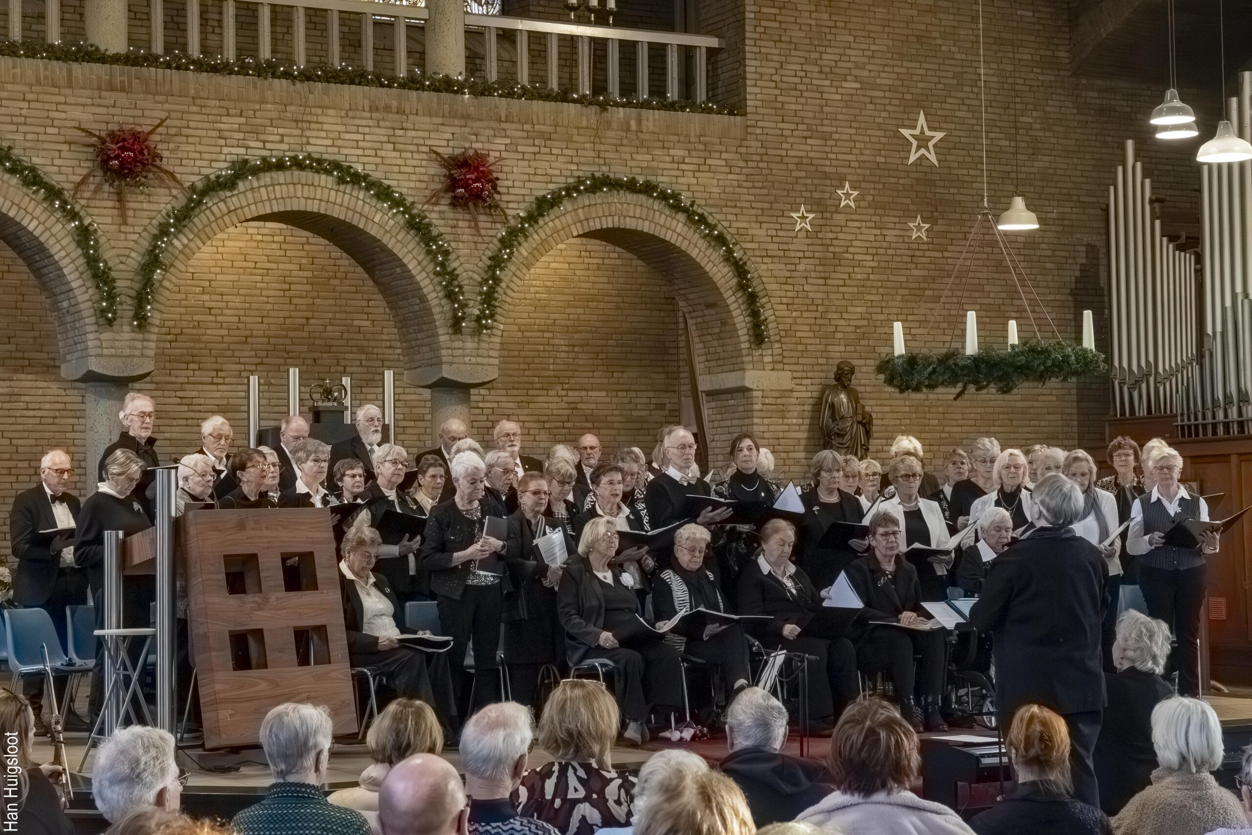 Dit zijn foto’s van Rhythm of Life Haarlemmermeer tijdens kerstsamenzang in december 2025 in de R.K. van Nieuw – Vennep samen met het koor uit Haarlem, Viva Vocaal. Ieder jaar repeteren wij met ons koor voor een kerstoptreden onder leiding van Carole Kroese en Elise Blesgraaf.
