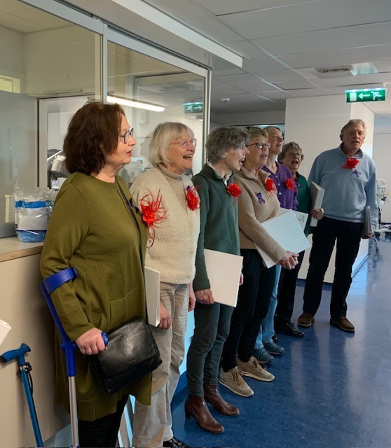In het LUMC in Leiden hebben we op verschillende oncologie-afdelingen gezongen. We stonden in de gang en de deuren van de pati?ntenkamers stonden open. Het waren korte, ontroerende optredens.